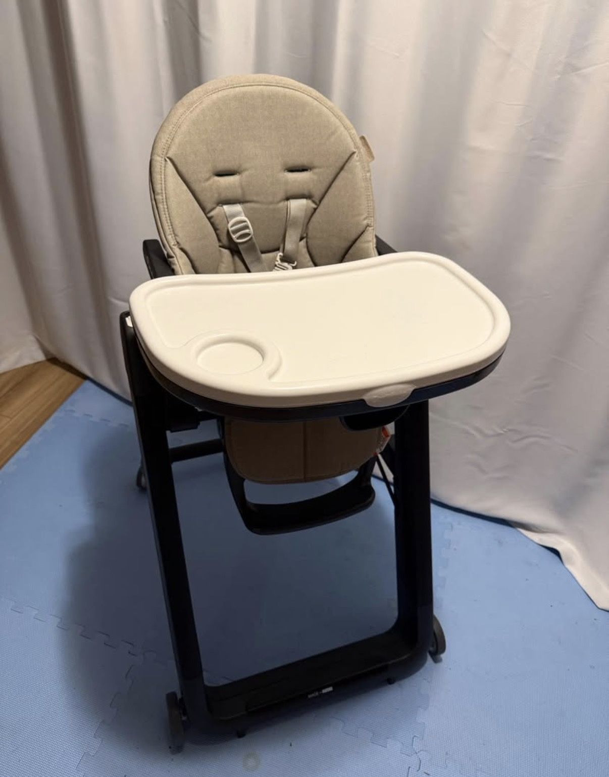 Super adjustable Peg Perego siesta high chair in good condition. This was great from even newborn (in fully reclined position as a place to set down baby) to toddler.