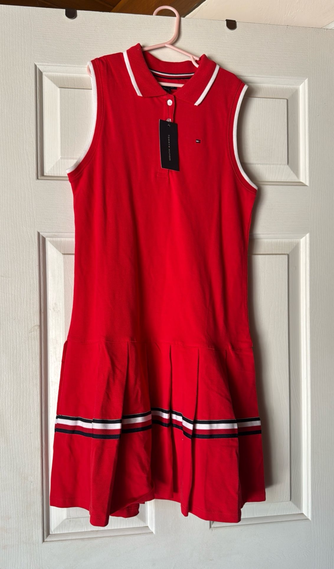 A pretty red Tommy Hilfiger dress for girls and young teens perfect for many activities and school. No stains, rips, or tears on the dress. The dress is in perfect condition and ready to be sold