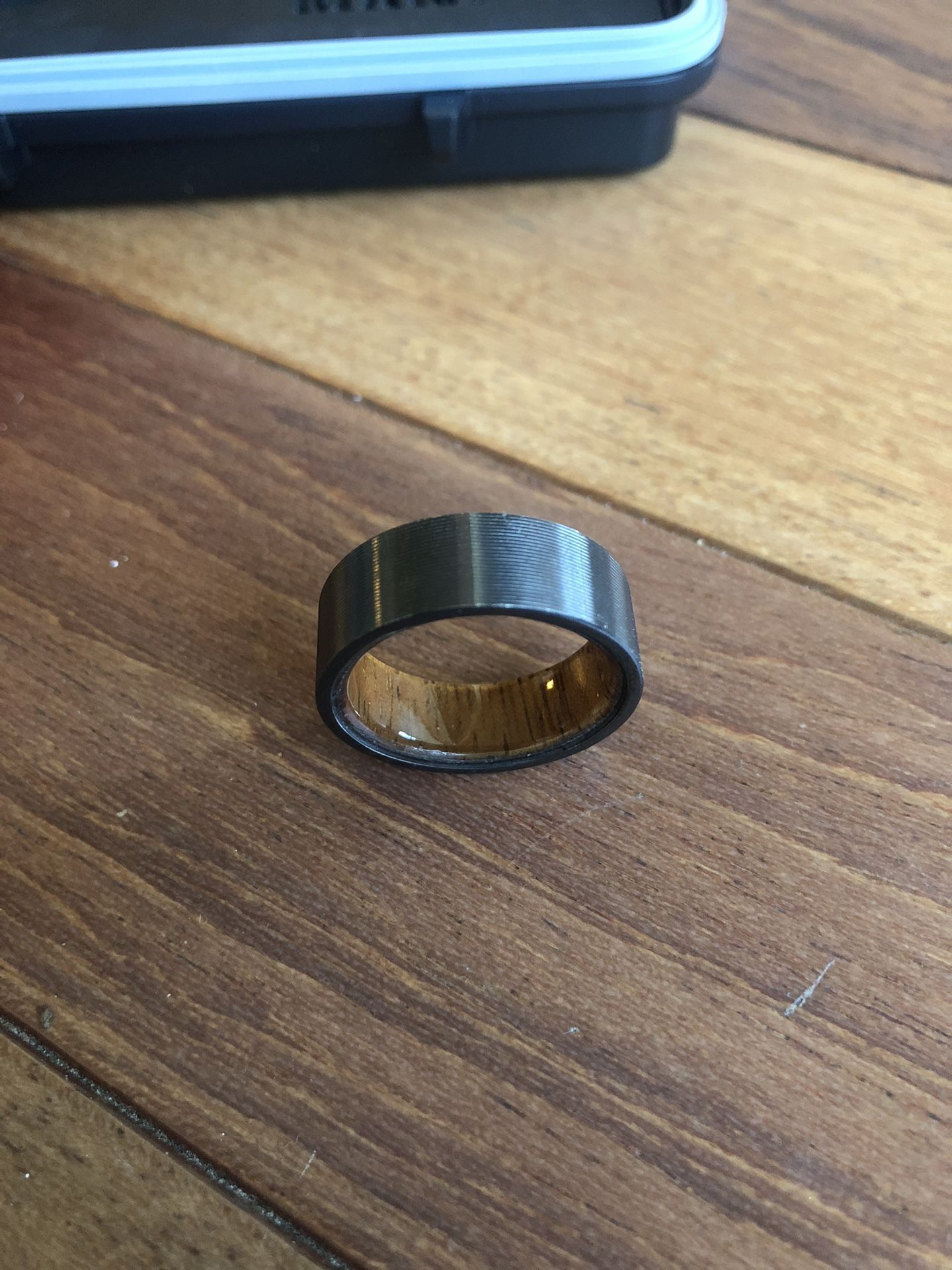 Shaka band. Black Zirconium shell with Koa wood comfort fit inlay. Size 8.5. 8mm width. Bought brand new for $750. No flaws or blemishes