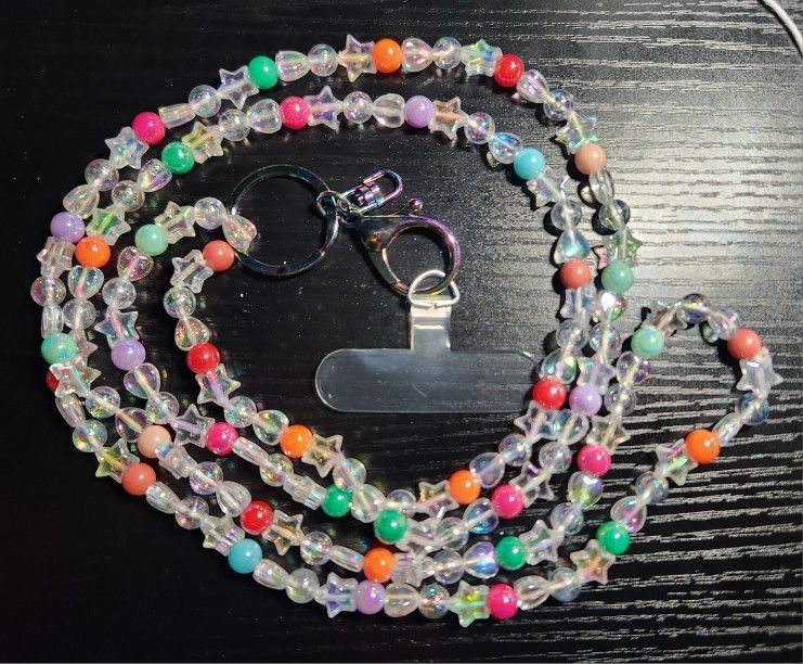 Beaded Crossbody Lanyard With Keychain And Cellphone Tether