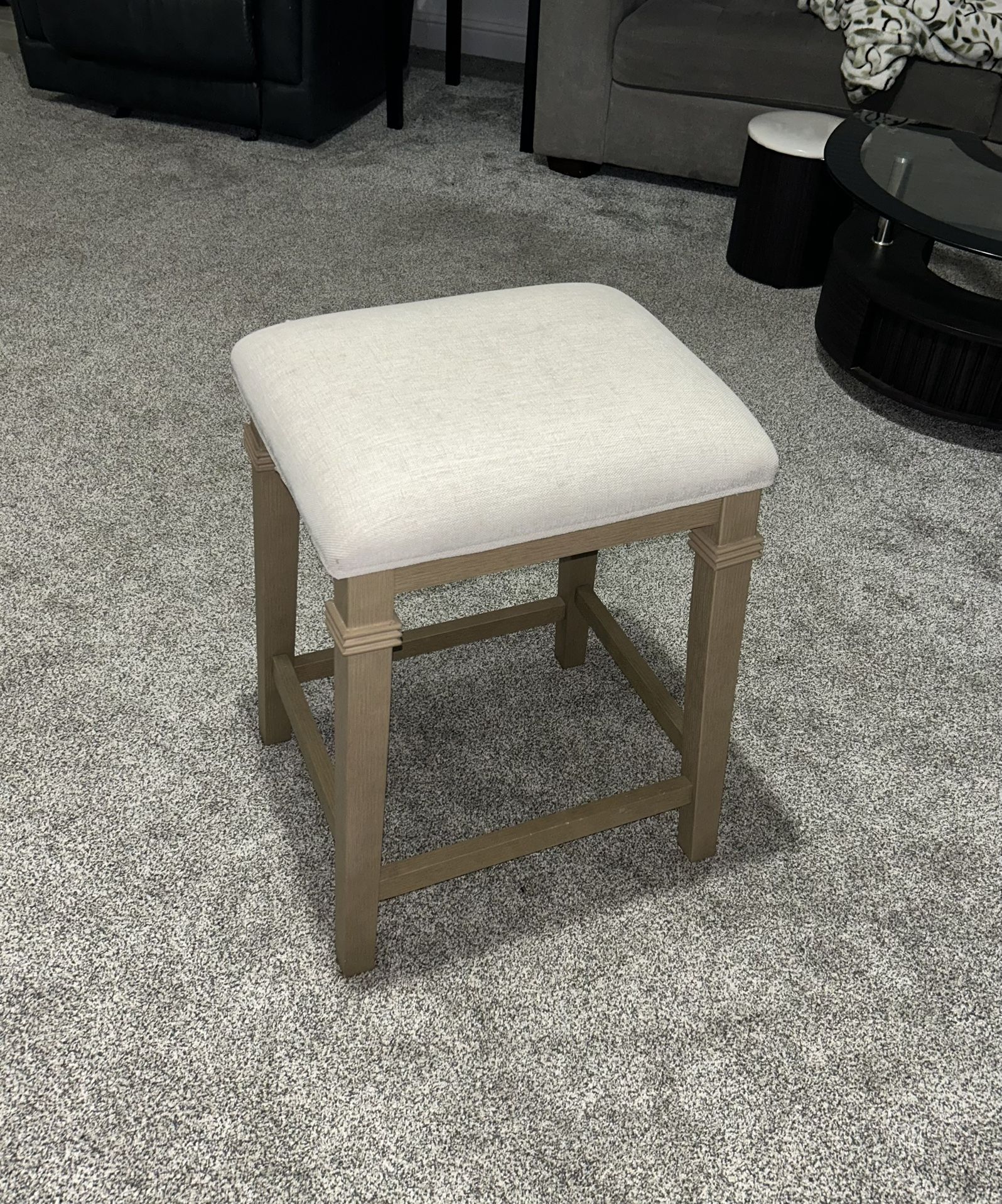 Set of 4 brand new Arabella backless counter stools for cheap! Colors are distressed gray. Sturdy, comfortable, and look great. Perfect for a kitchen island or counter-height seating.