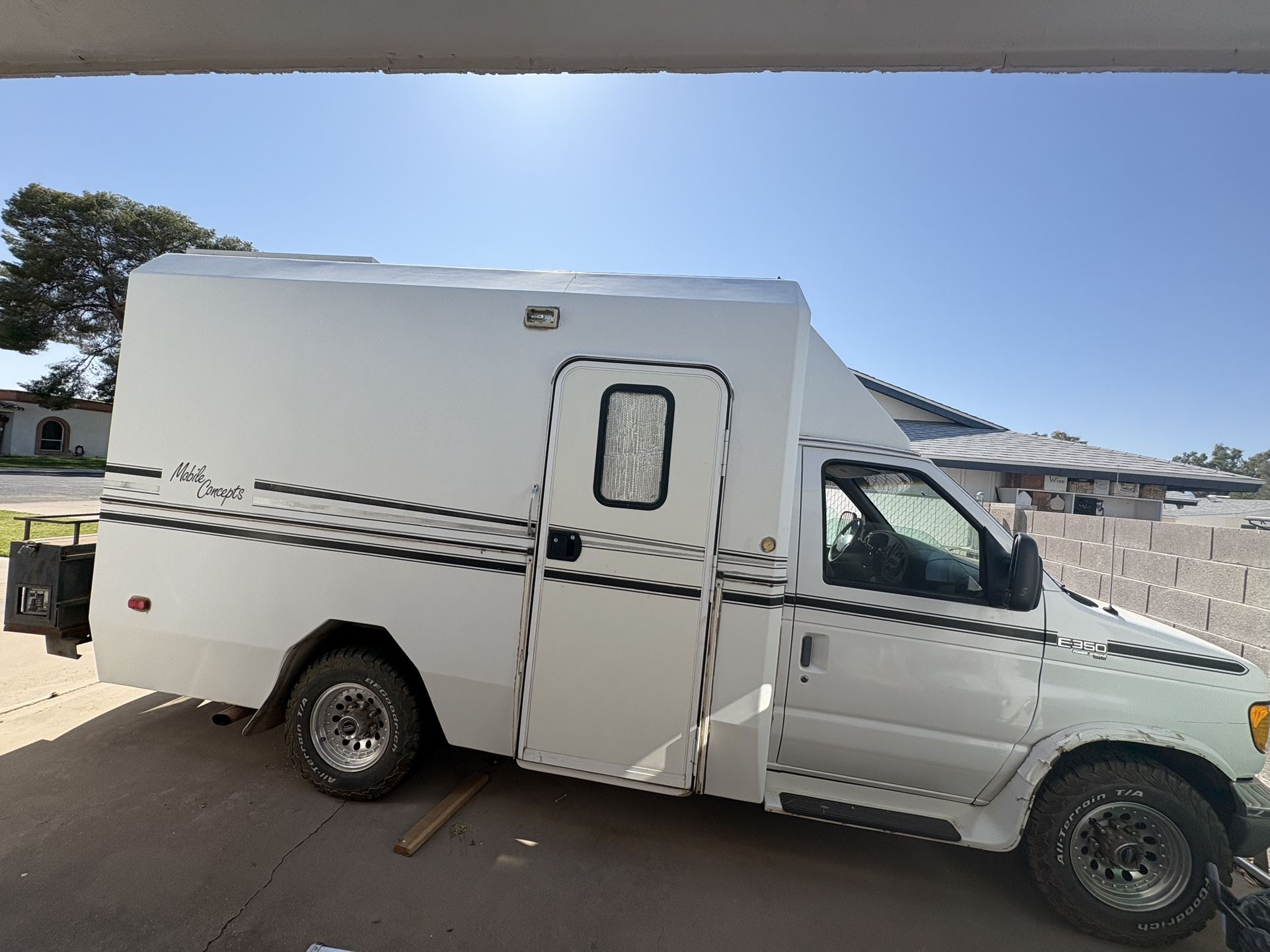 Obtained through family estate Ford E-350 Solar Conversion Powerstroke Don’t know what make the panels are but all the wiring and systems are sound and good to go Brand new tires Back up generator Remote start Interior does need work and there are a few dings and scratches on exterior but all around a great vehicle $15,000 OBO
