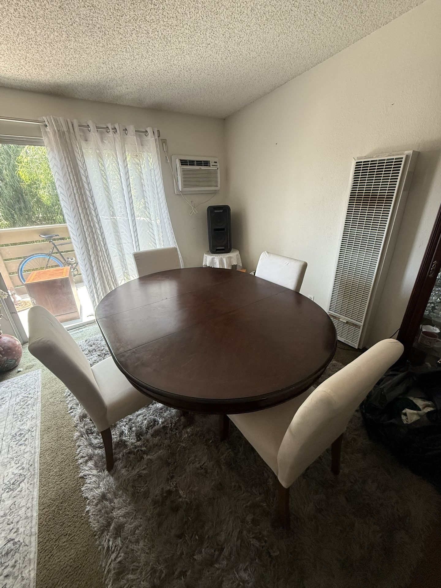 Moving out of state, selling my dining room set 71” long by 54” wide Middle piece comes off which makes 54” long Comes with 4 seats (Includes Red seat covers)