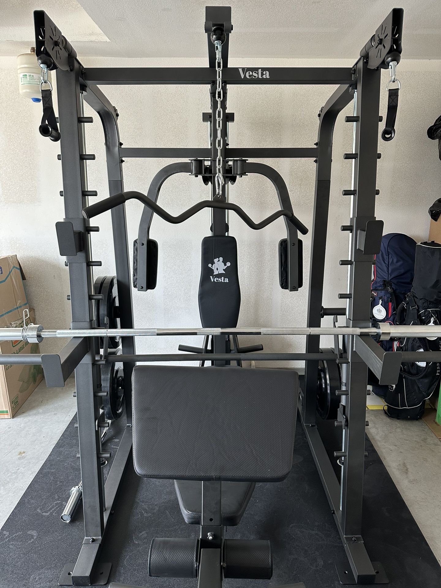 Vesta Fitness Smith Machine 2001 w/Bench Attachment | 230lb Bumpers Weights | 7ft Olympic Bar | Fitness | Gym Equipment | FREE DELIVERY 🚚