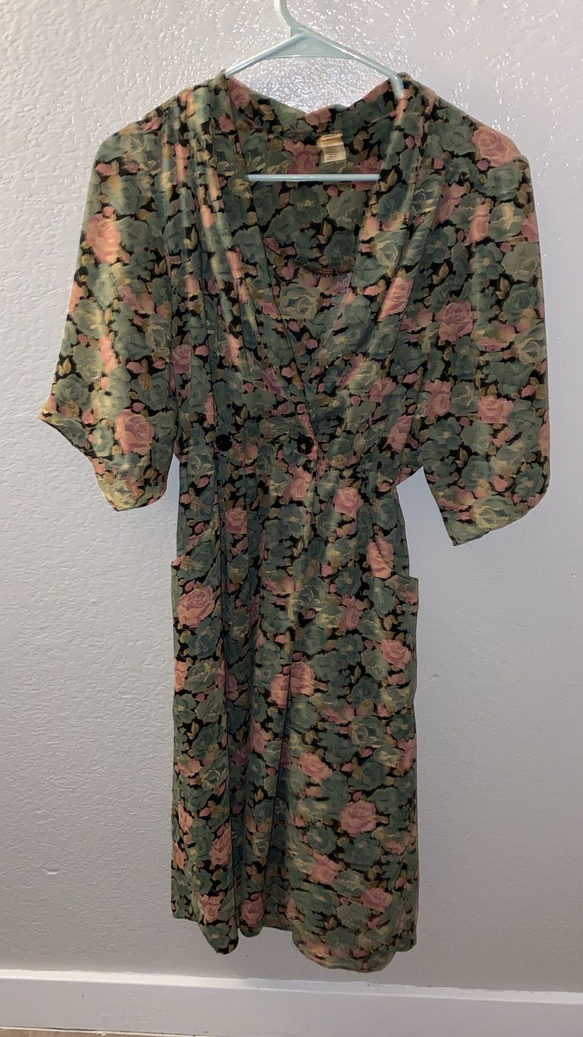 Vintage dress (not exactly sure how old it is, but based off the wearing of the tags and style of dress could be anywhere between 50’s-70’s). Willing to negotiate on price. Can meet in Phoenix or Glendale area. Fits size medium to large in woman’s