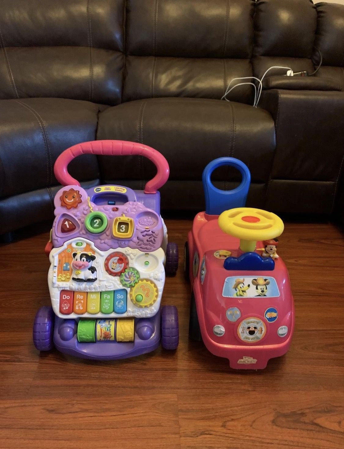 VTECH BABY WALKER AND PUSH CAR MICKEY MOUSE Sounds and lights. Batteries π included GOOD CONDITION, CLEAN πPICK UP ONLYπ PLEASE ONLY SERIOUS BUYERS ππΌ $22 *BOTH* You can check out my page for more articles. Thanks !! π