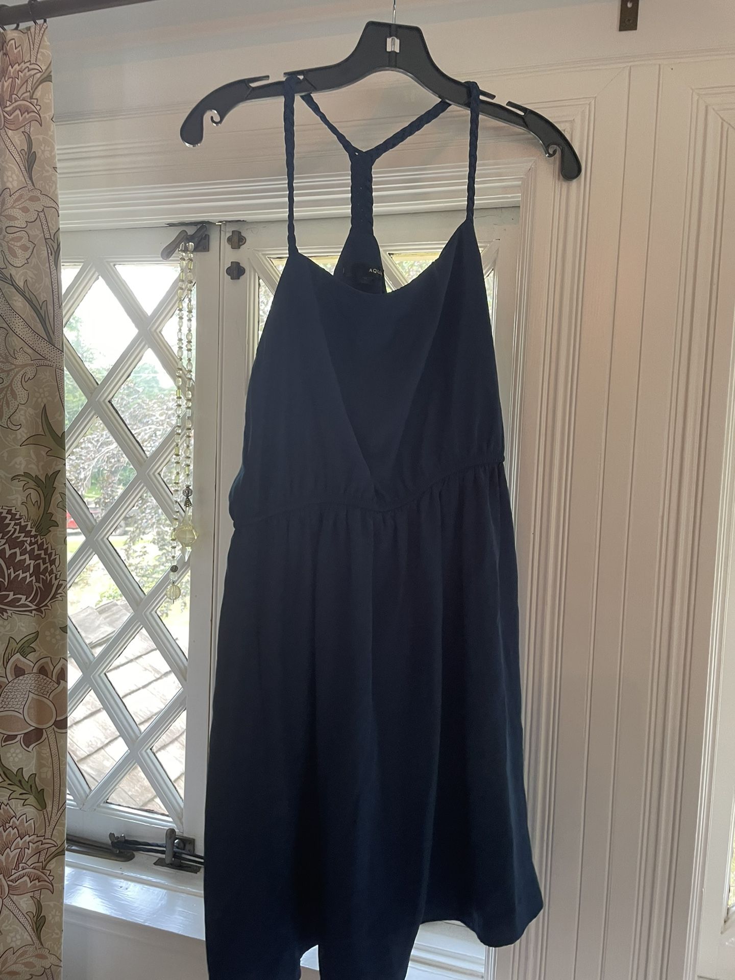 Aqua blue mini sun dress with braided straps. In perfect condition