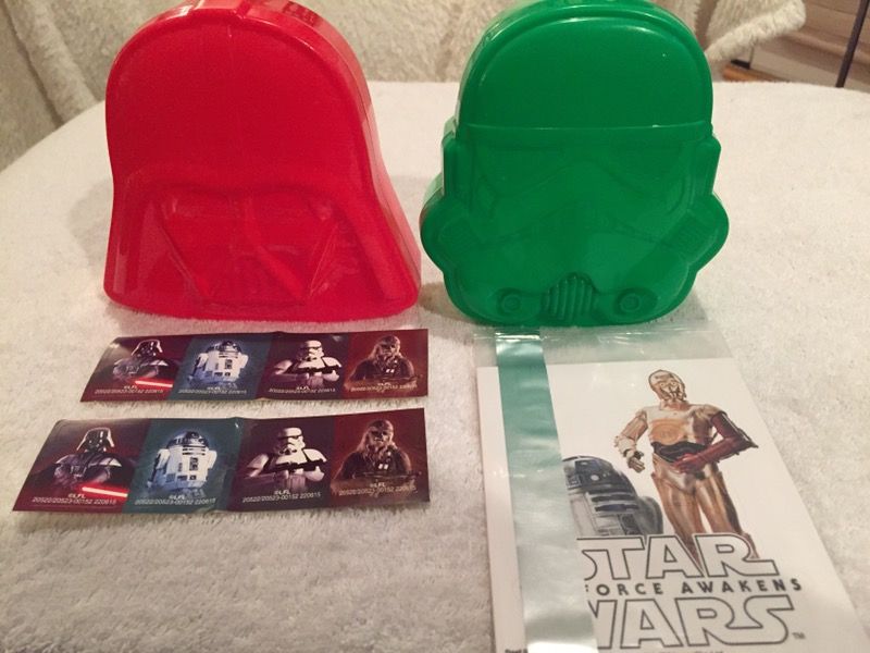 Two plastic boxes with Star Wars stickers.