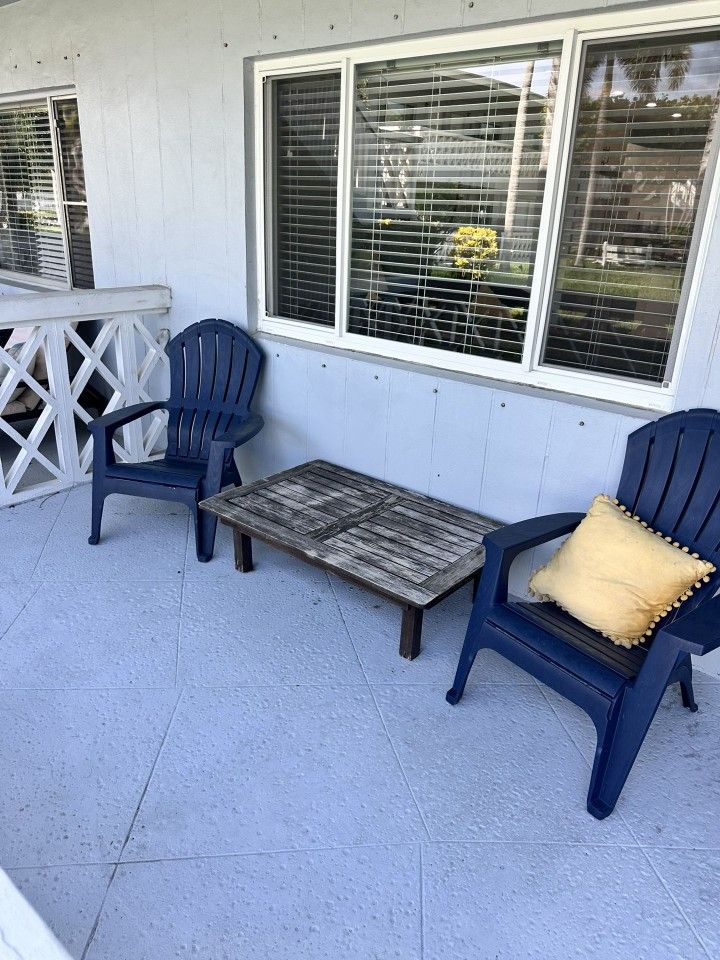 Patio furniture for sale. 2 Adirondack chairs and outdoor coffee table. Price for all.