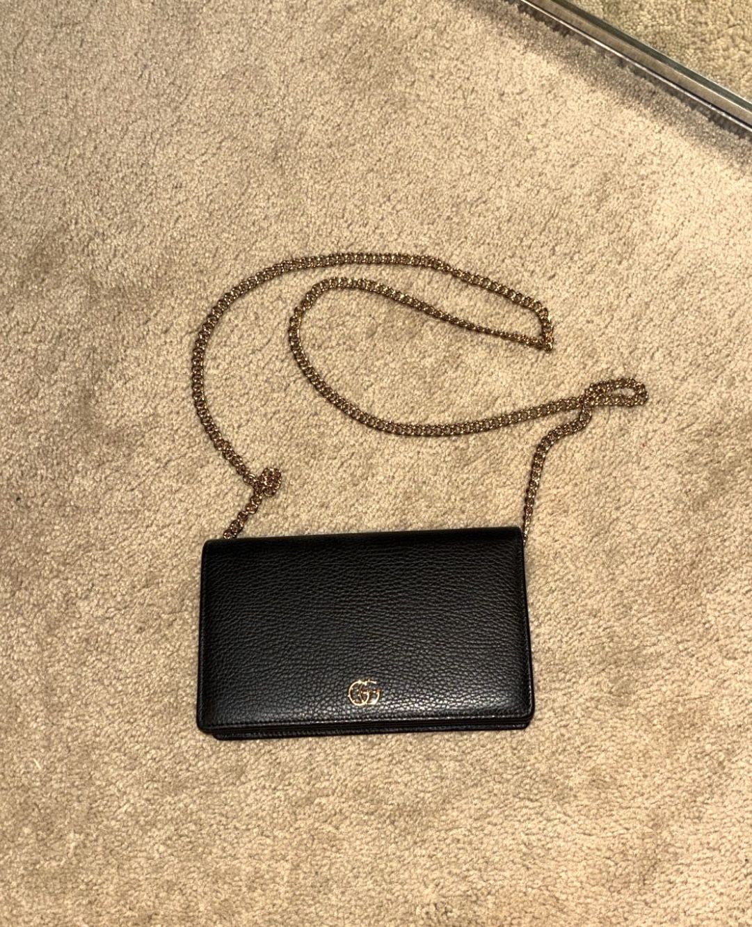 Authentic Gucci wallet purse no flaws from in-store with gold chain, black leather. I used it maybe once, in perfect condition :)