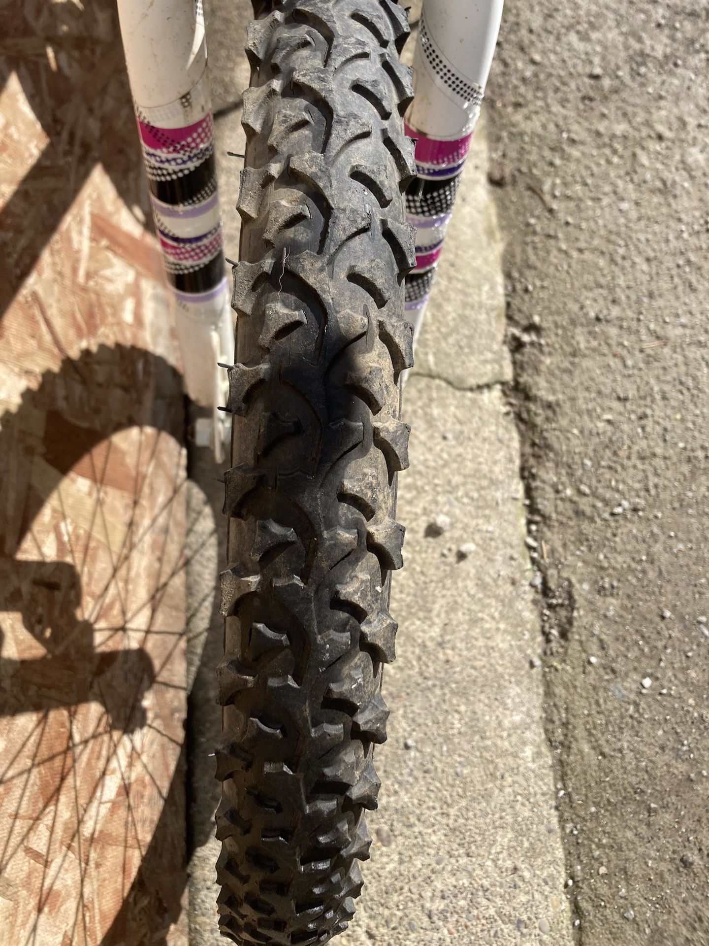 The bikes rides good and has normal wear on it. Everything works good. There are marks on the paint of the bike in some places but that is the only issue with the bike.