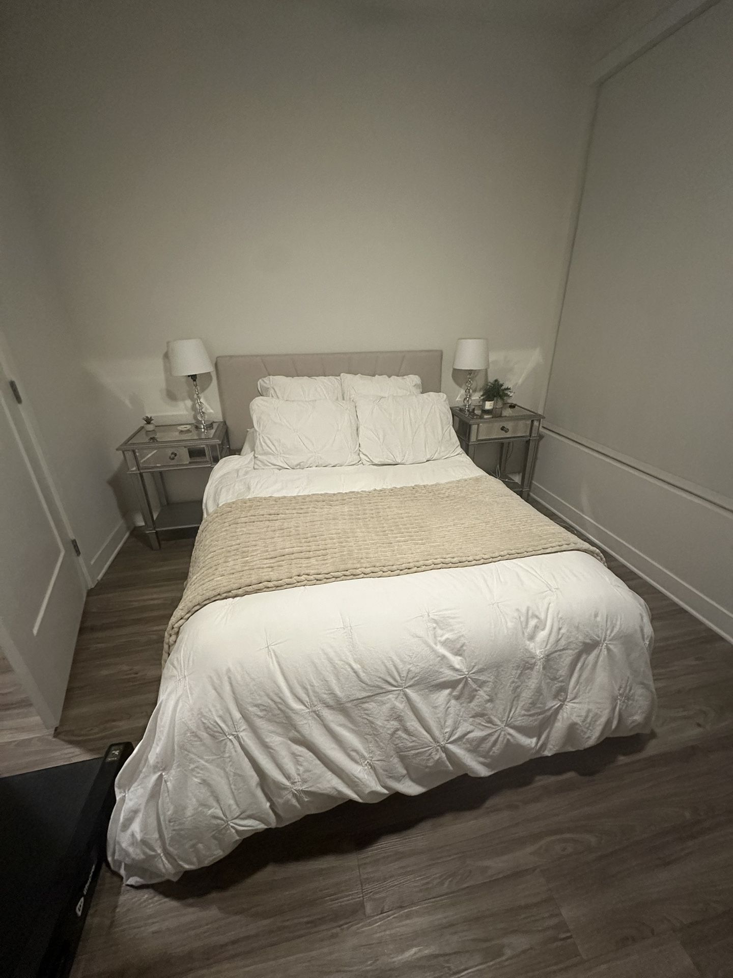 Mirrored night stands for $125. One of the drawers opens a little funky, but can easily be fixed. Selling the dresser for $200 total. Minor wear on it but still a great dresser, and could maybe just use a touch up on silver paint in a couple places if you’re extra particular. $325 for the entire set.