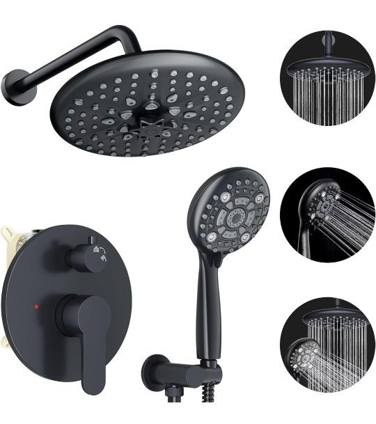 Brand New in Box Retails For $219.98 EMBATHER Shower Faucet Sets - Overhead Rain Head Shower System with High Pressure Handheld Complete Combo and Mixer Valve Trim Kit - Matte Black Rainfall Shower Fixture for Luxury Bathroom