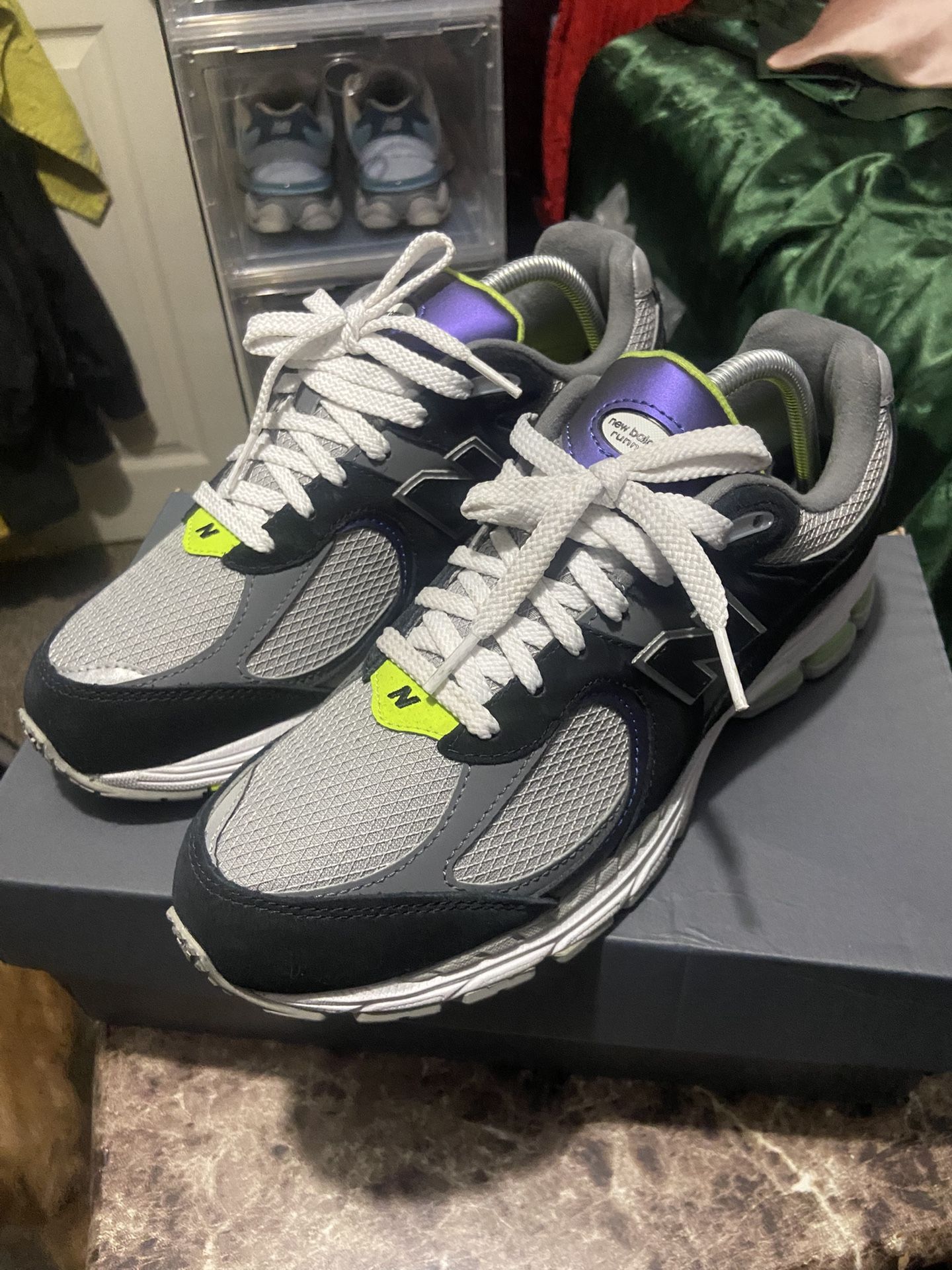 Elevate your footwear collection with these sneakers. Crafted with premium black suede uppers and exclusive 'Purple Noir' colorway accents, these athletic shoes are a stylish blend of comfort and sophistication. The sleek design is complemented by grey highlights, creating a versatile look that transitions seamlessly from workout sessions to casual outings. The New Balance 2002 R model, renowned for its durability and support, features a unique style code M2002RHI. Catering specifically to men's US shoe size 8.5, these sneakers promise a snug fit and all-day comfort. The release date of 2024 ensures a contemporary edge in your sneaker game, making these shoes a future classic for any enthusiast.