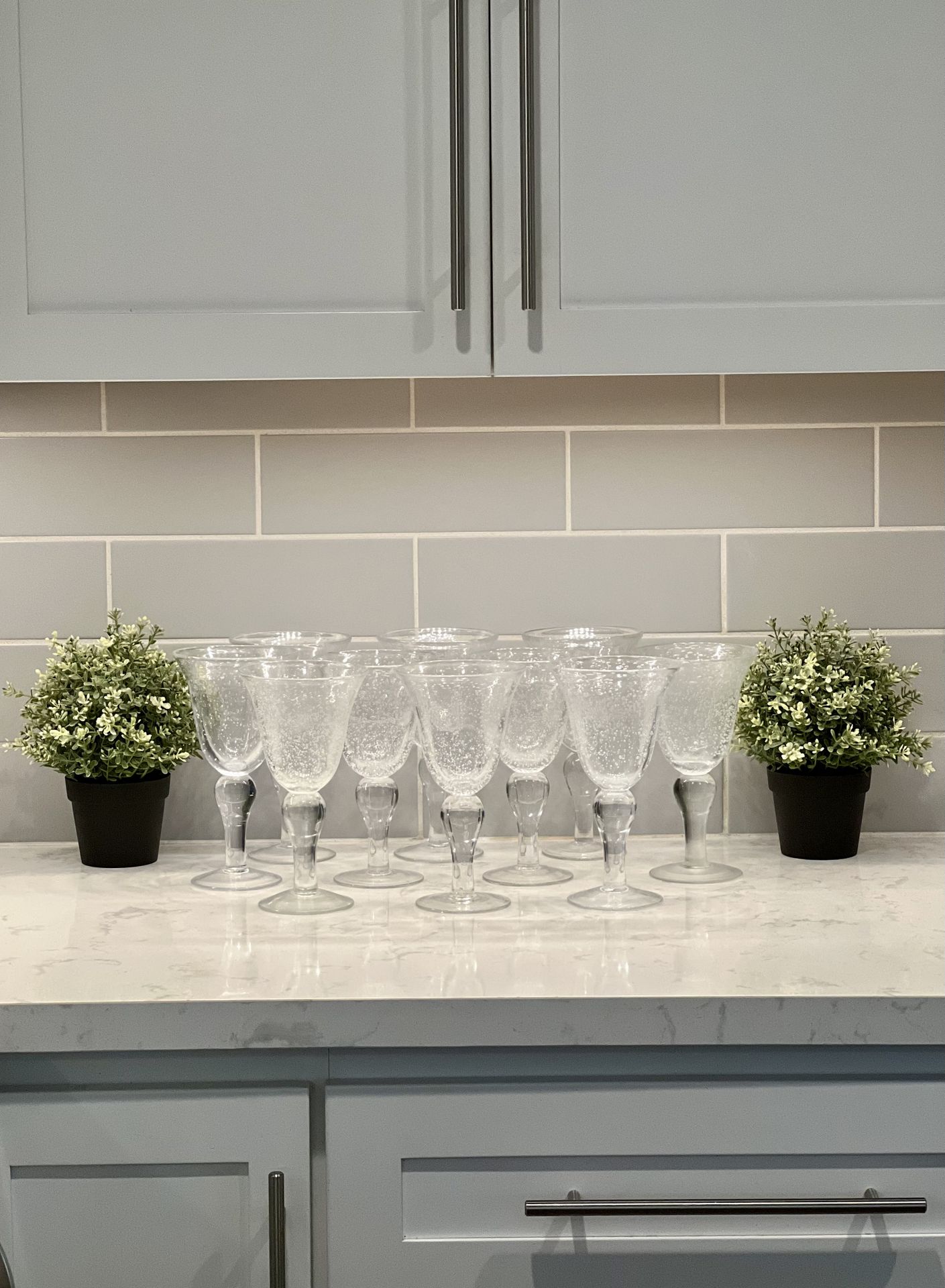 Glassware, Drink Glasses, Beverage (11) NEW! Z Gallerie Iris Ball Stem Hand Blown Bubble Glass Goblets, $5 EACH (Retail $16 EACH)