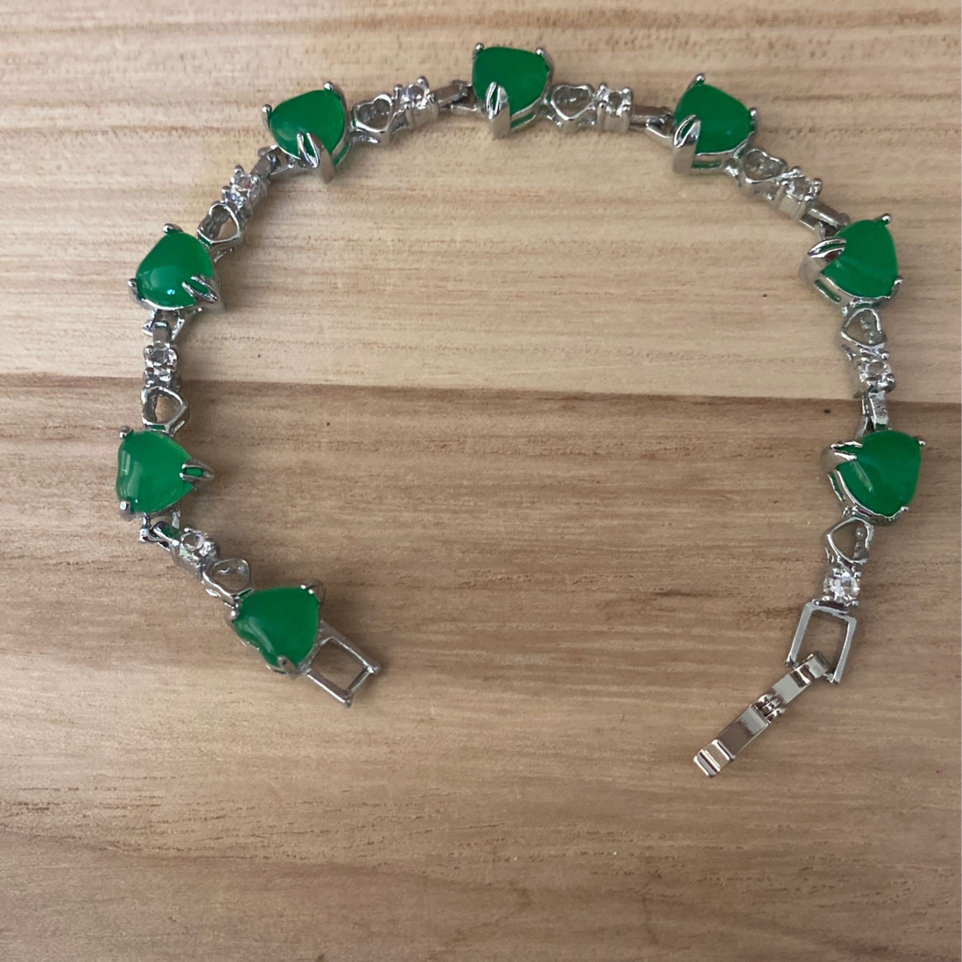 Silver plated natural green Jade Heart-shaped Inlaid with white zircon 7 inches long bracelets