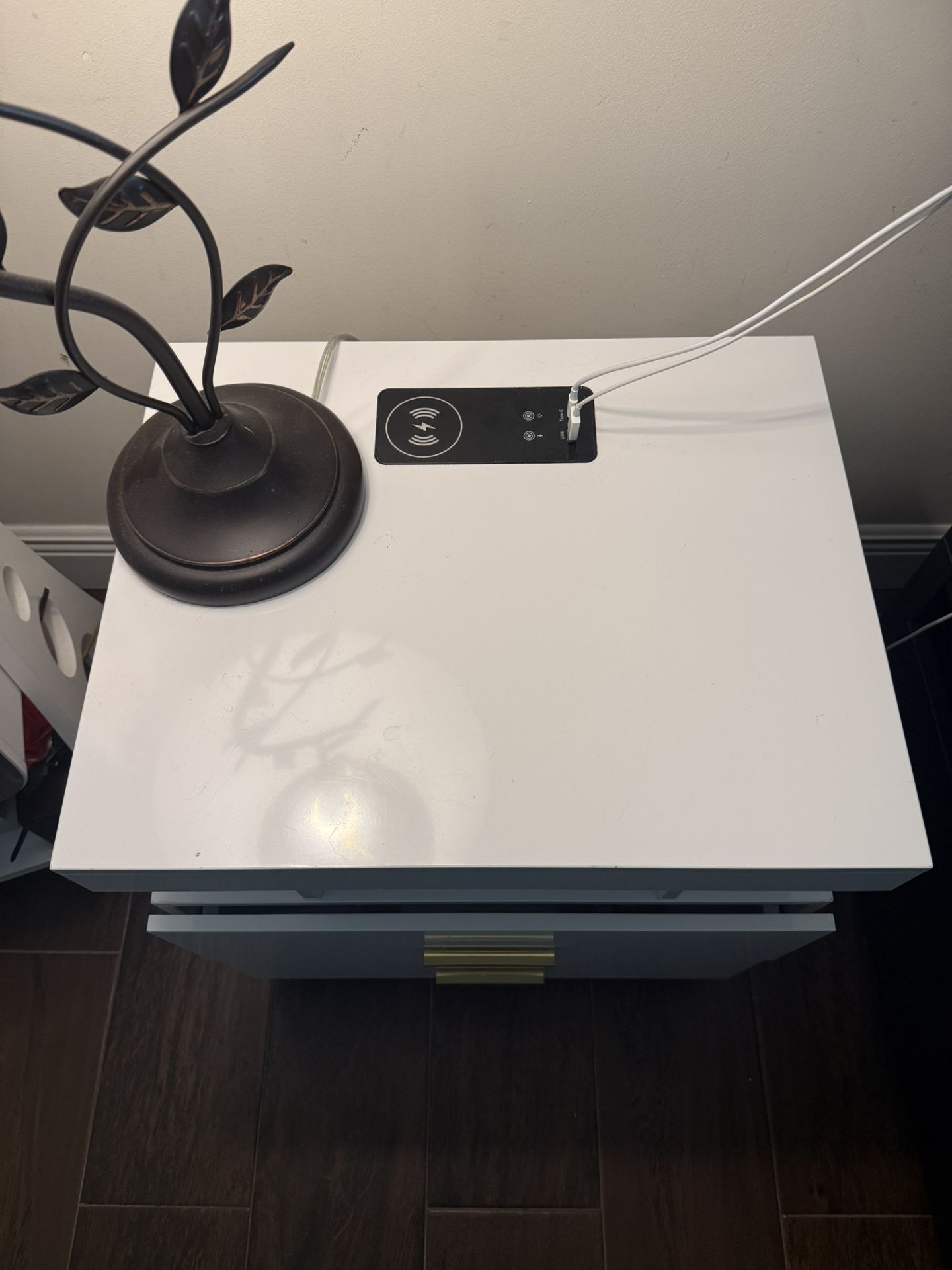 Excellent condition! Has 2 built-in electric outlets + USB ports and an LED lighting feature. Super convenient for phones, lamps, tablets, etc. Dimensions: 20” L × 15.8” W × 23” H No damage. Works perfectly. Pickup only.