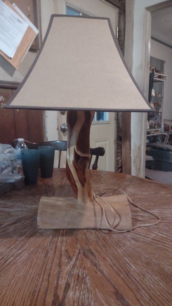 Vintage Diamond Willow Lamp ( One Of A Kind ), lamp itself is 11.5 inches wide and 18 inches tall, with the shade it's 13 inches wide by 24 inches tall. Very unusual piece, most of these lamps set on a flat piece of wood. This has been setup in my living room with native American dolls on log, took it down cause it blocks the air of the ac unit. Shade is not original, it's what looked good to me on lamp. The lamp and shade are sold together only for $50 Firm. Please look closely at all the pics cause that is what you are getting Any questions message me..