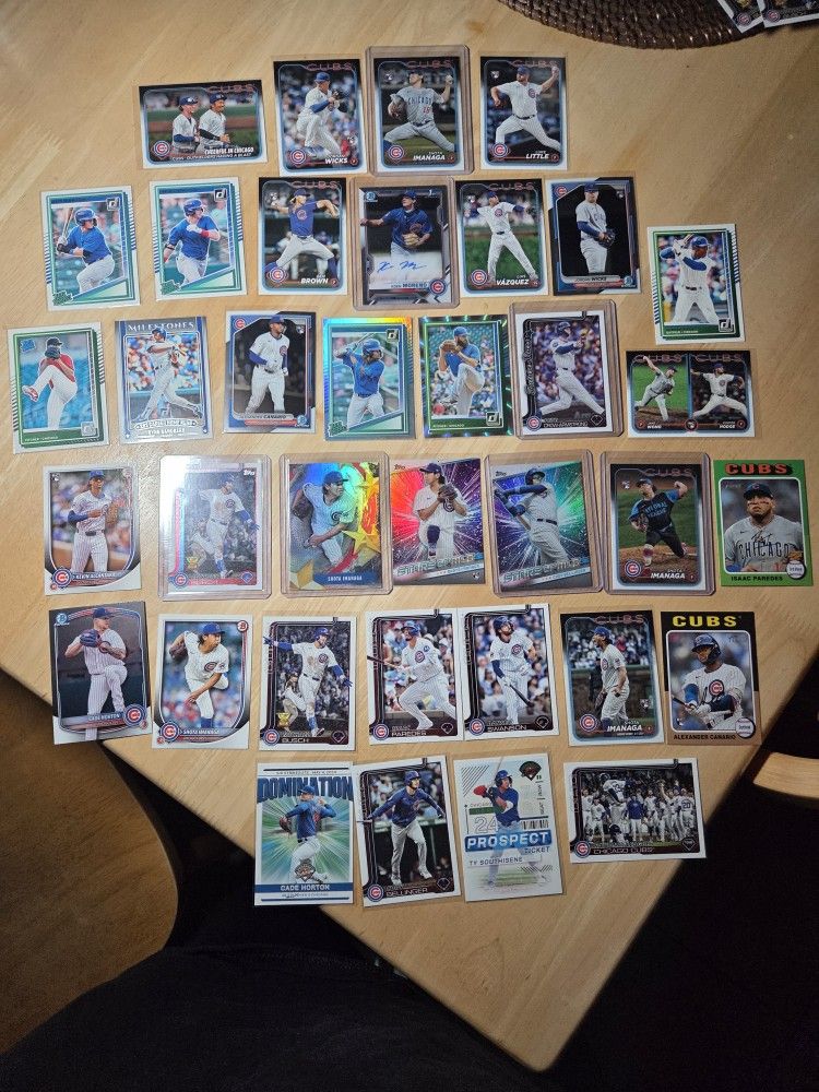 Chicago Cubs lot! Koen Moreno Bowman 1st on card auto. Kevin Alcantara Prizm. Jake Arrieta Laser, 6 Shota Imanaga cards, plus more of your favorite Cubs!