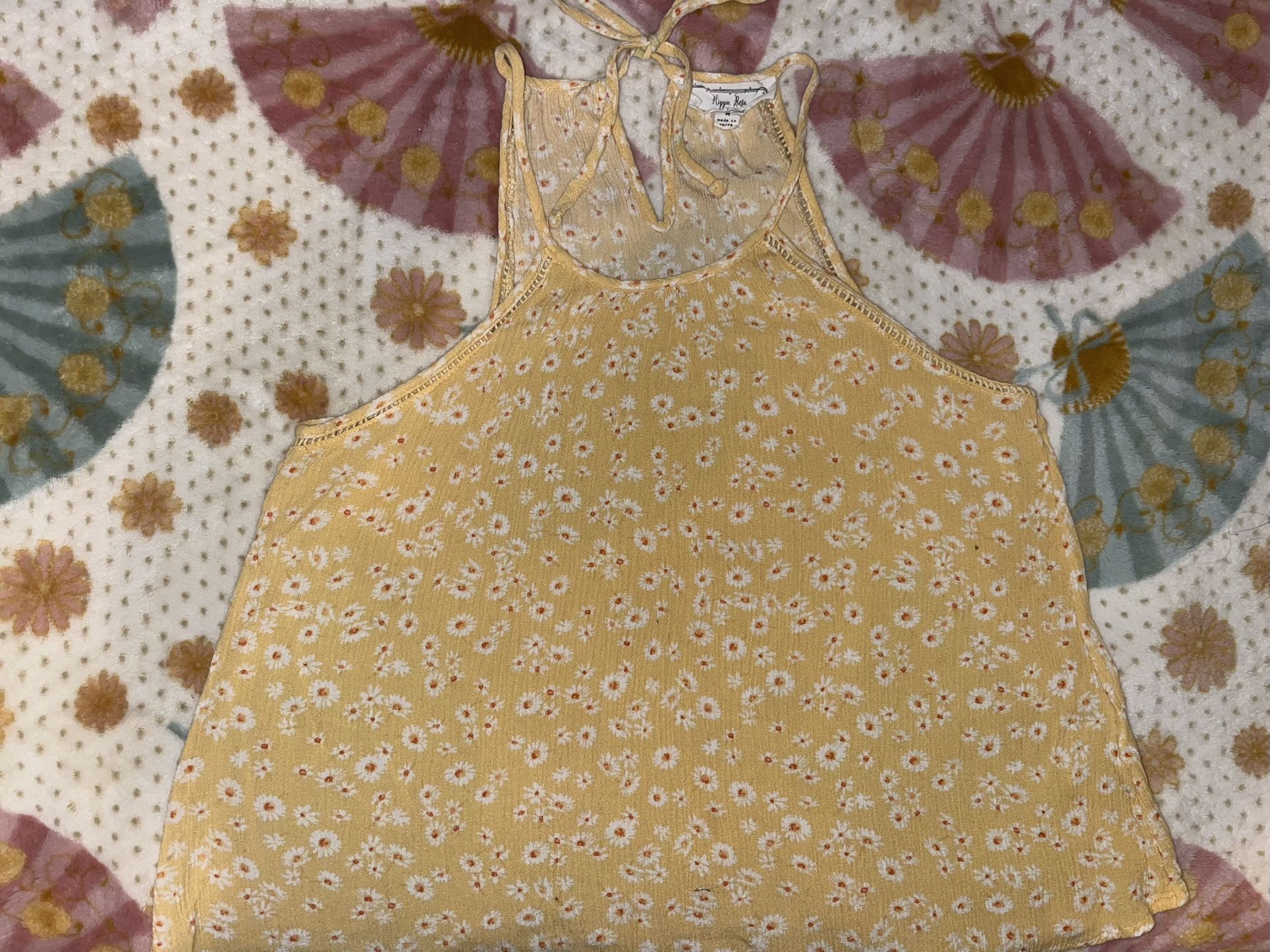 Hippie rose yellow flower printed adjustable tie halter top Médium