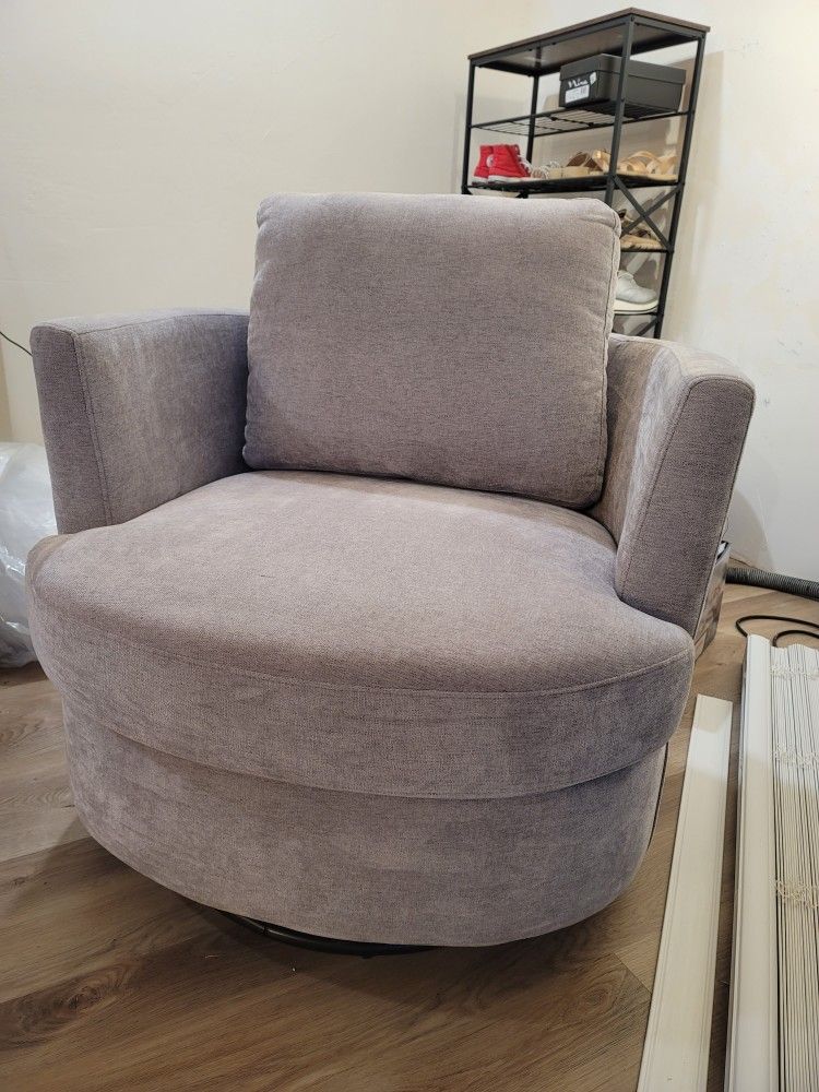 Swivel Barrel Chair Living Room 31.9D x 31.9W x 31.9H in. Comes from smoke free/pet free home. Barely used, greyish colour. Frame Material: Alloy Steel, Engineered Wood, Iron. Selling due to buying new furniture. CASH ONLY
