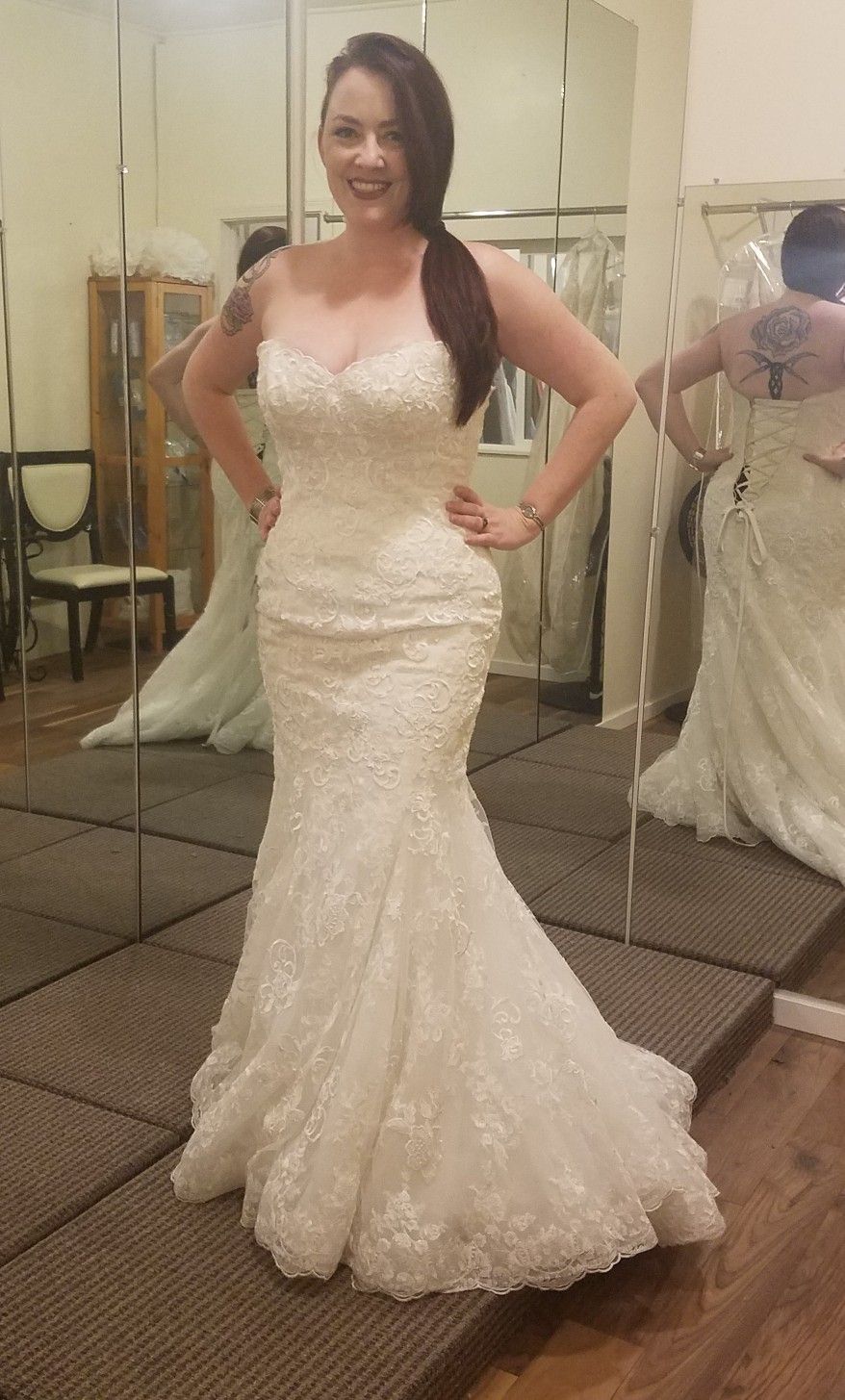 Beautiful pale ivory lace wedding dress. (Looks darker in pix than it is in real life) Wore to try on when I bought it but decided not to use it for my wedding. Sz 10