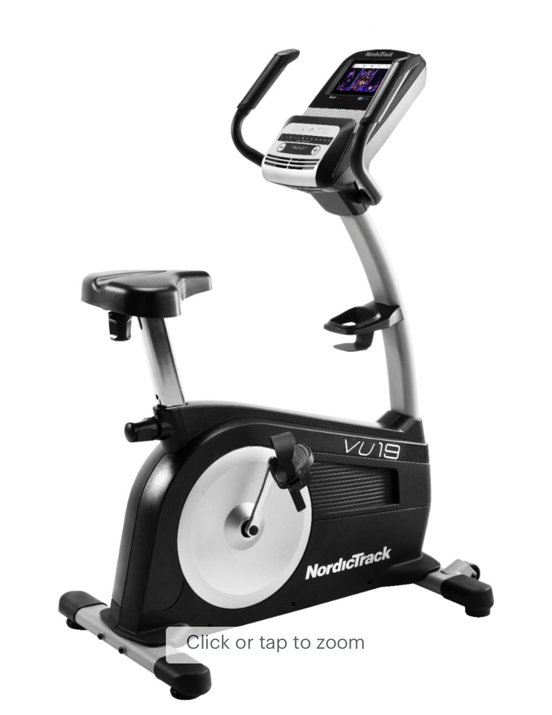 Overview A full range of features delivers several entertainment options and advanced engineering, while the seat of the Commercial VU19 offers comfort and stability as you work out. The oversized cushioned seat features vertical and horizontal adjustment options. The 19 Lb. effective inertia-enhanced flywheel is equipped with SMR™ Silent Magnetic Resistance to give you a quieter, smoother workout than ever before. Get new, in-studio workouts with personal trainers delivered every day to your 7-inch Smart HD touchscreen and watch your stats in full color. A self-adjusting AutoBreeze™ workout fan keeps up with your speed to keep you cool as you train. Features 7” Smart HD Touchscreen This Smart HD touchscreen delivers plenty of interaction and entertainment to sidestep workout monotony. 19 Lb. Effective Inertia-Enhanced Flywheel Engineered for incredibly smooth performance, this heavy, 19-pound flywheel provides 24 levels of SMR™ Silent Magnetic Resistance. iFIT Ready Join personal trainers for Studio Classes and Global workouts as they auto-adjust your equipment for you. Bluetooth Compatible Audio Connect your device to the console sound system via Bluetooth® to stay motivated with your favorite workout playlist. Ditch the earbuds for incredible sound with dual 2-inch speakers. AutoBreeze™ Workout Fan Stay cool and comfortable with the oversized fan that automatically adjusts its speed to match your workout intensity. Integrated Pivoting Tablet Holder Attach your tablet safely to the tablet holder and adjust the viewing angle to enjoy your favorite movies, music, and shows while you work out. Oversized Cushion Seat This oversized seat provides a great cushion, so you can stay relaxed and focused on your workout. EKG Grip Sensor EKG sensors are built into both handlebars for a quick, accurate heart rate reading. Not a medical device, accuracy may vary. Wireless Chest Strap Included Connect to the included wireless chest strap for a continuous heart rate reading to help you stay in the right training zone for your fitness goals. 24 Digital Resistance Levels Adjust through 24 levels of resistance at the touch of a single button. More resistance increases your calorie burn. Extra-wide Ergonomic Pedals Extra-wide to fit every foot, these ergonomically designed pedals feature adjustable straps for added stability as you ride. Front-Mounted Transport Wheels Quickly move your stationary bike from room to room with built-in, front-mounted transport wheels. One Touch® Controls Quick, responsive controls adjust your resistance almost instantly at the touch of a button. Your focus stays on your workout, instead of scrolling through options. Weight Capacity 325 Lb.