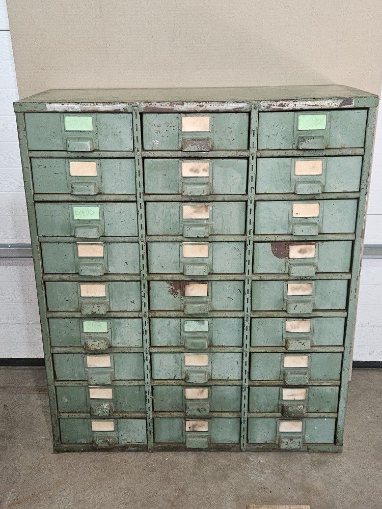 Vintage Industrial 27 Drawer Parts Cabinet
