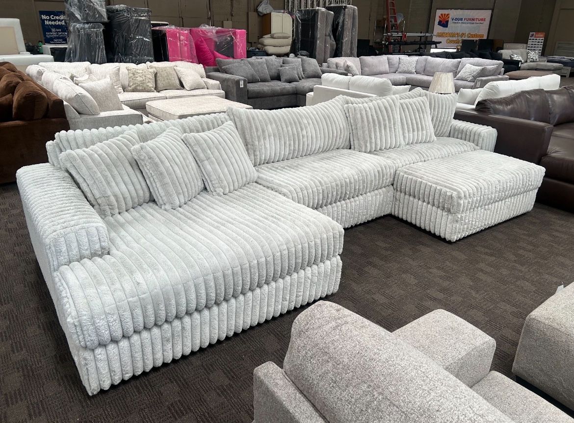 Awesome new sectional! Super soft and comfortable seating. Take it as shown or design your own. Pick other colors / fabrics! Black, grey, white, cream, blue, green, pink etc… Delivery and Financing available! Take home for $0 down!