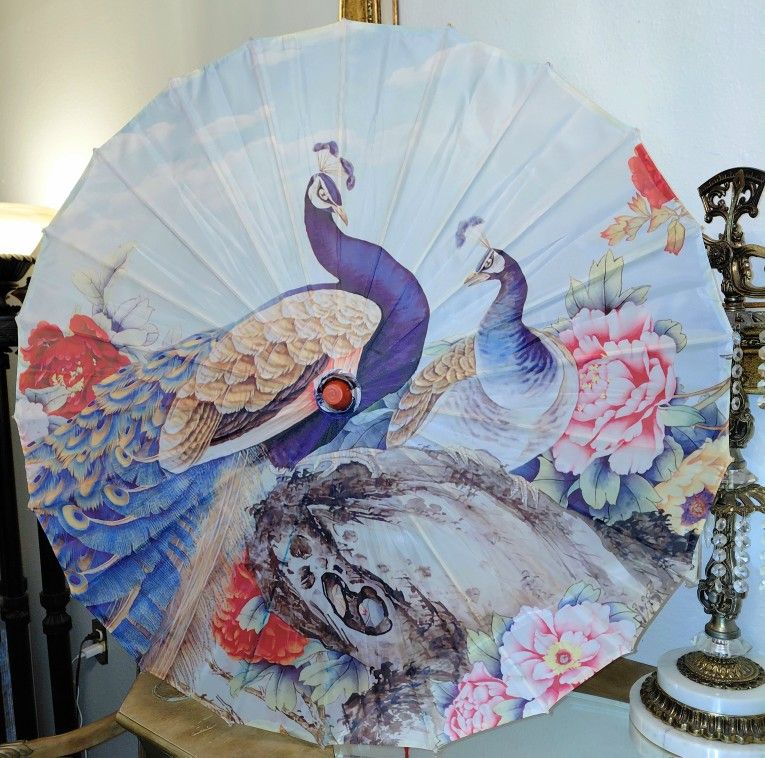 Asian Flowers Peacock Bird Folding Umbrella Fashion Decor π¦