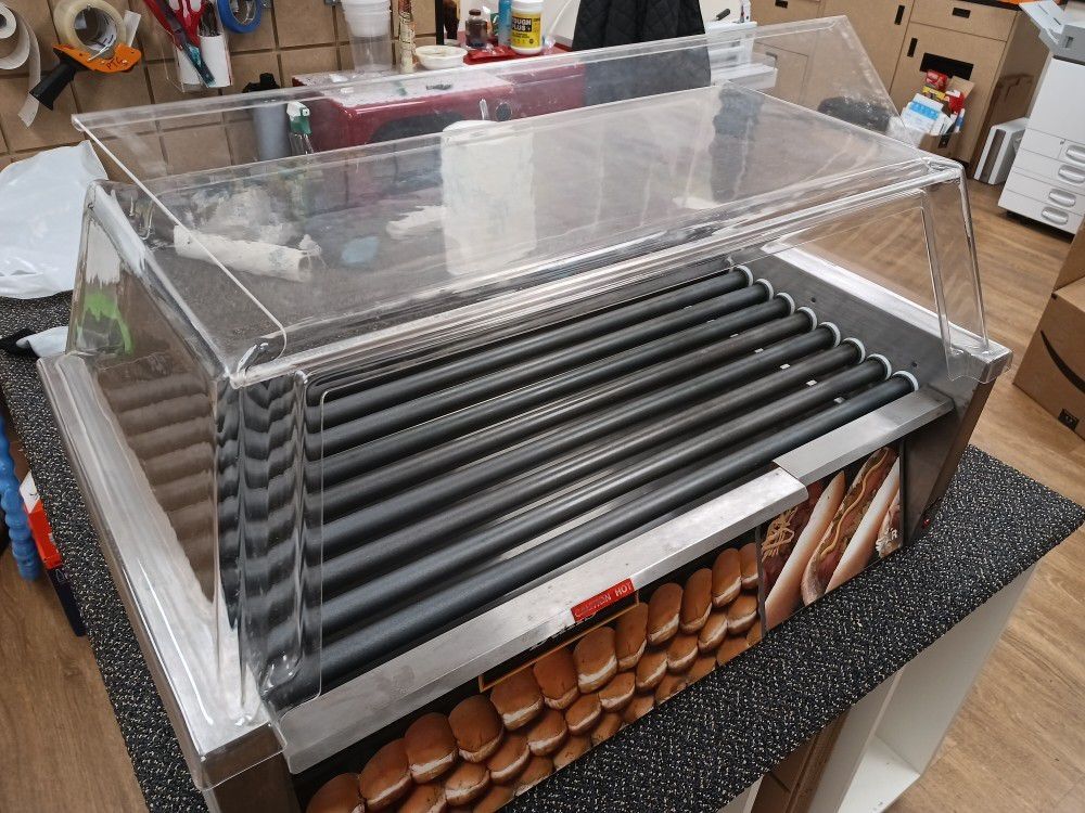 Barely used hotdog machine for businesses. Like new condition, Star Manufacturing hot dog roller gill with clear cover. Used less than 3 month