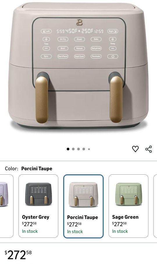 Beautiful 9QT TriZone Air Fryer, Dual Baskets or Single XL Basket, Sync Finish, Touch Display, 1700W, Roast, Bake, Broil, Dehydrate, Reheat, Dishwasher Safe, Drew Barrymore Design (Porcini Taupe)