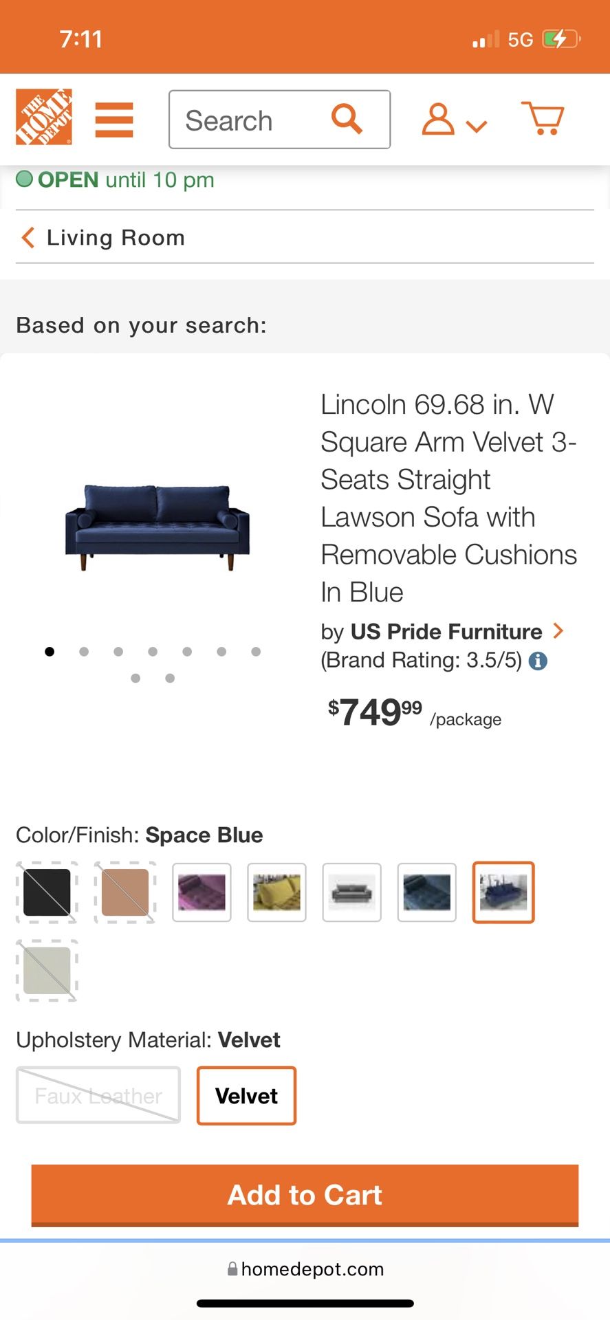 Beautiful Lawson Velvet Sofa New In Box 69.68 Inches 3 Seats Removeable Cushions Modern Sofa/Contemporary Sofa New $749 plus Tax