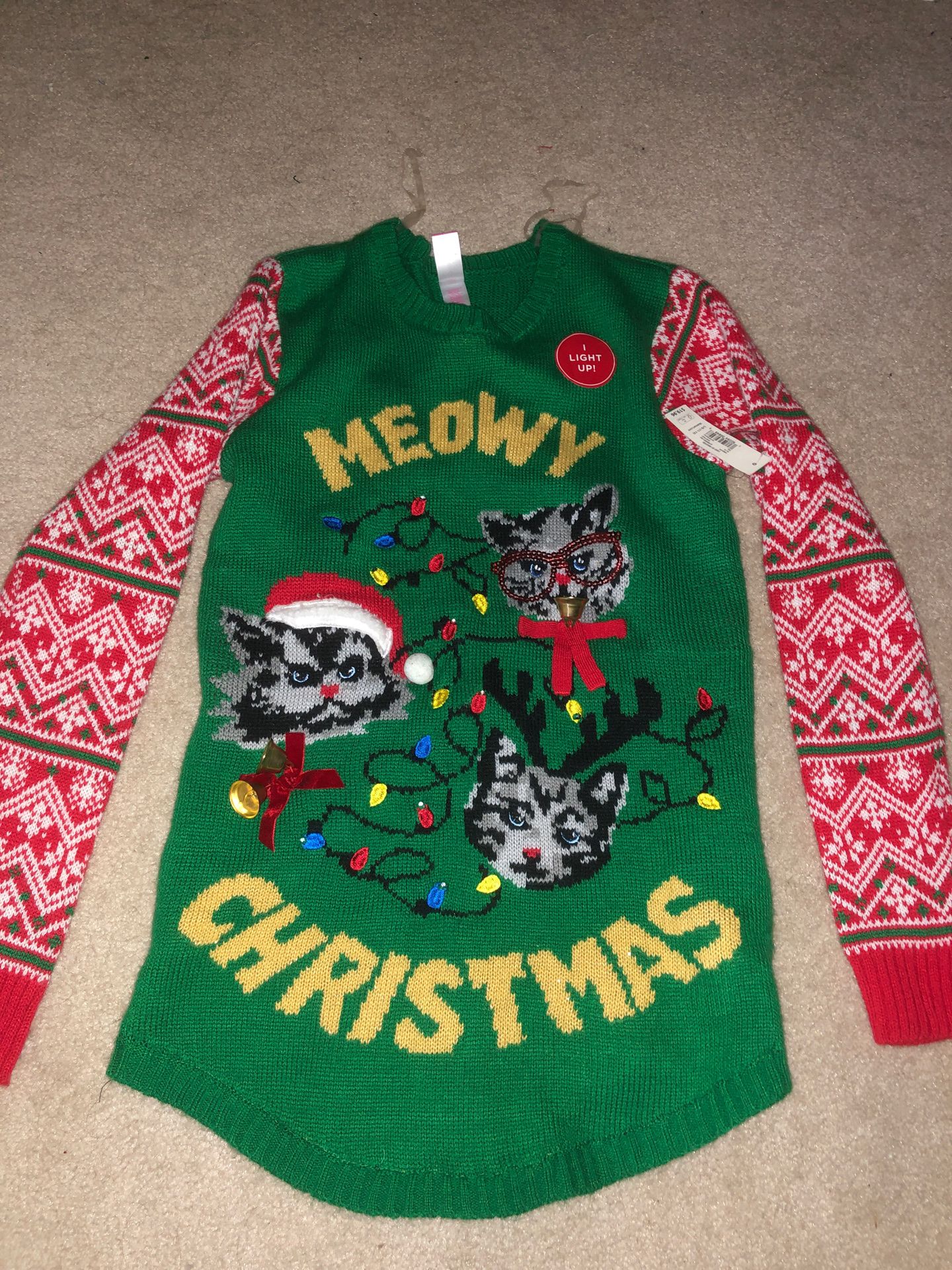 Brand new with tags. Lights up. Switch to turn on is inside sweater.