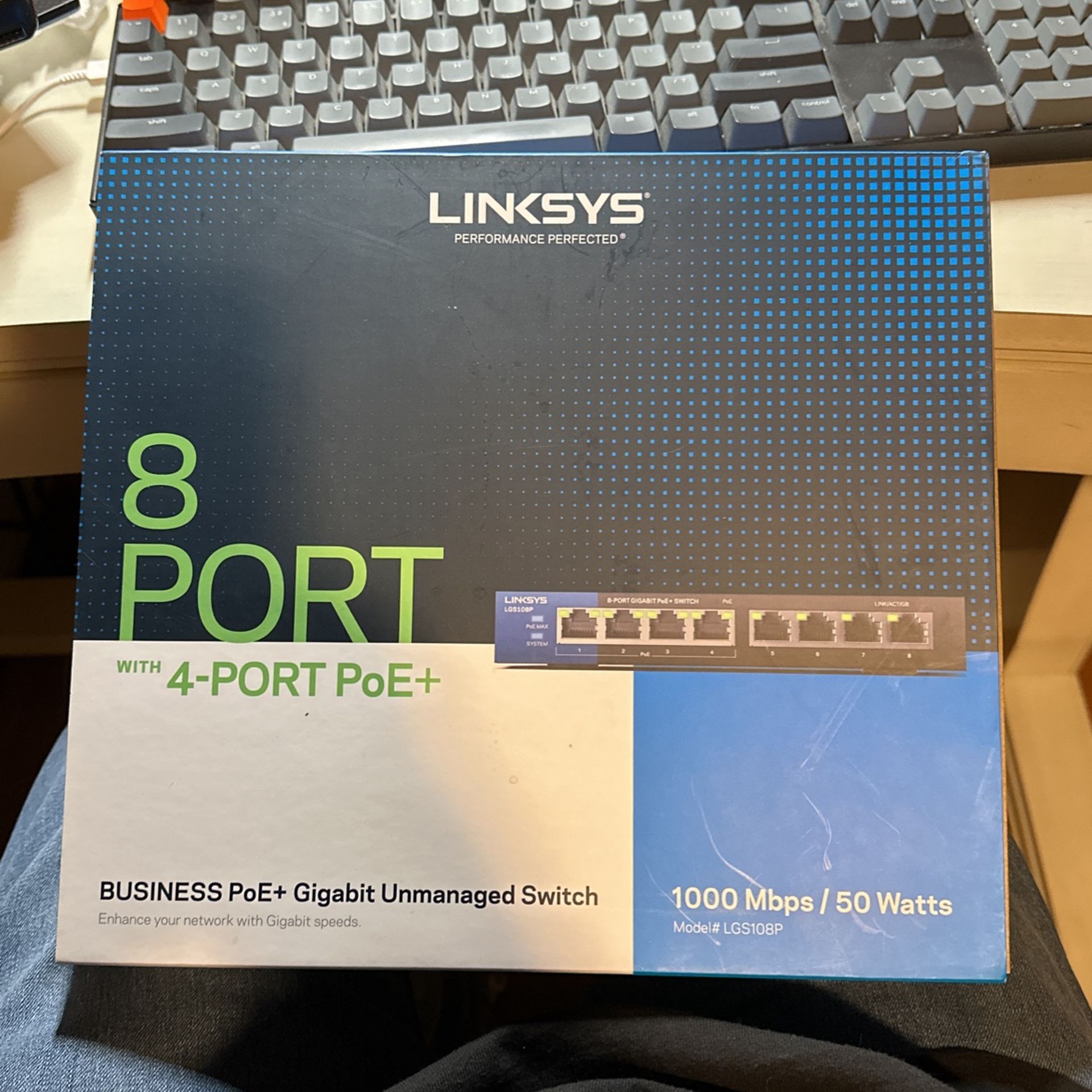 Model LGS108P. New in box. From the manufacturer.: Upgrade your network to Gigabit speeds and accelerate your business performance when sending large files to servers, drives, and printers. And, with PoE+ enabled devices such as VolP phones, access points, and surveillance cameras, you can eliminate the need for additional power cables and outlets, making installation simpler and less expensive.