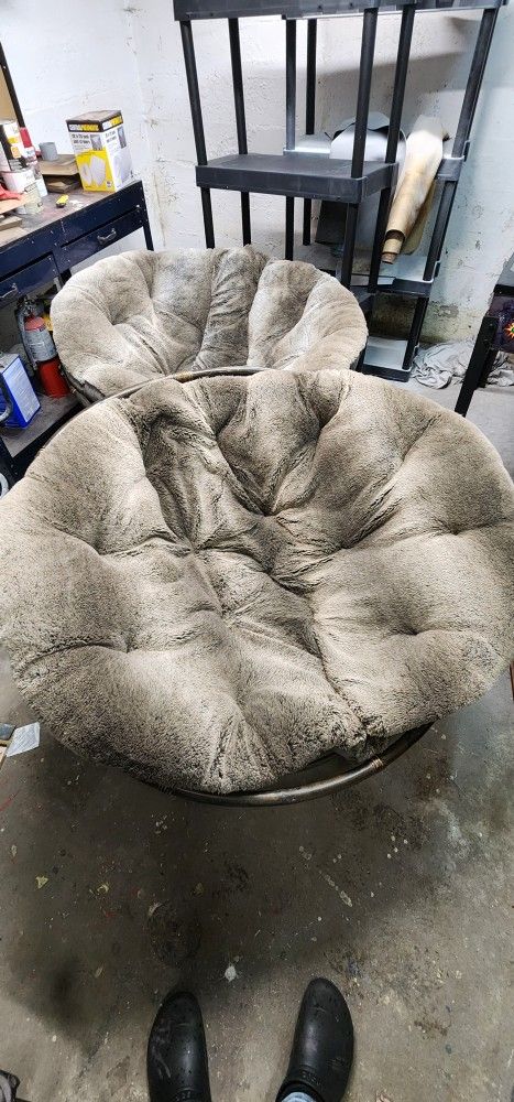 I have two extra large round papasan chairs for sale with the furry style cushions. I only used one, so it has a little wear on it (pictured) but is otherwise in pretty good condition. The other chair looks great. I bought these from Pier 1 Imports about 5 years ago for $400 each. Asking $300 for the pair or $160 for one