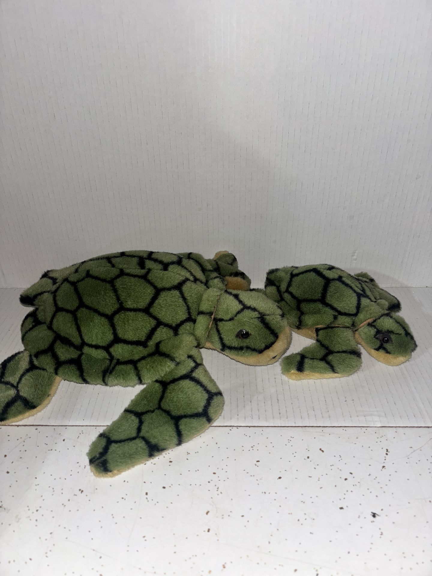 A&A Sea Turtle Plush Stuffed Animal Toy 12" and 7”Green Tan Kids Collector Ocean both in good clean condition check pictures 16