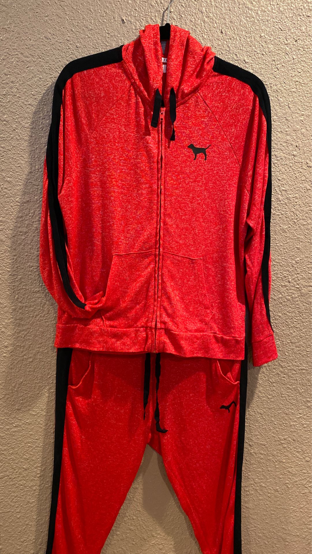 Very Cute Victoria's Secret Pink Hoodie Joggers Medium size in red. Non smoking like new.