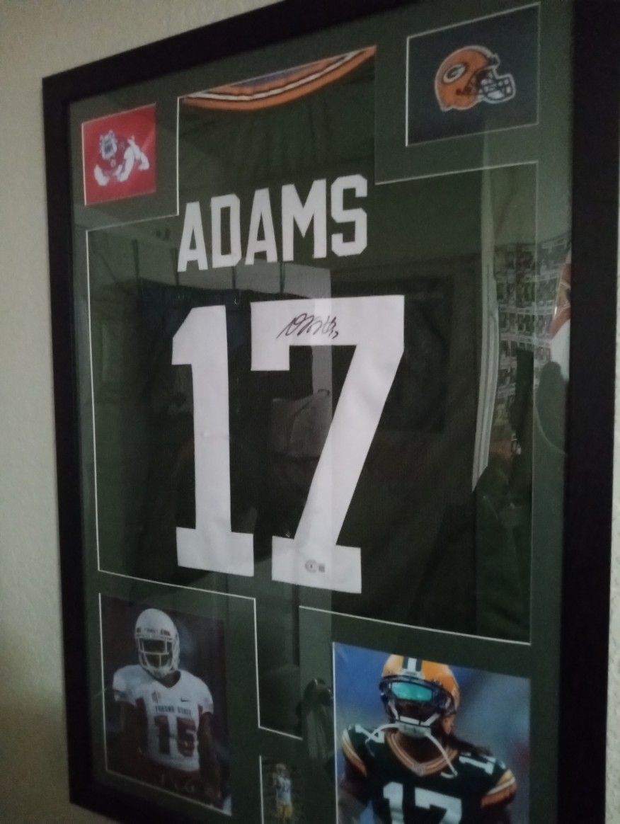 Las Vegas Raider Wide Receiver Davante Adams autograph on a Green Bay Packers Jersey. Beckett Certificate of Authenticity and Frame included.