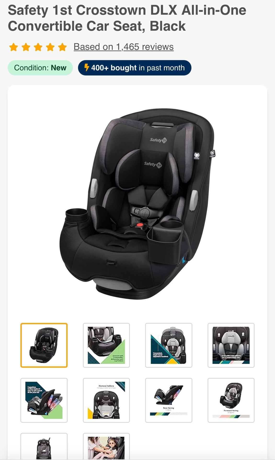 Safety 1st Crosstown DLX All-in-One Convertible Car Seat, Black