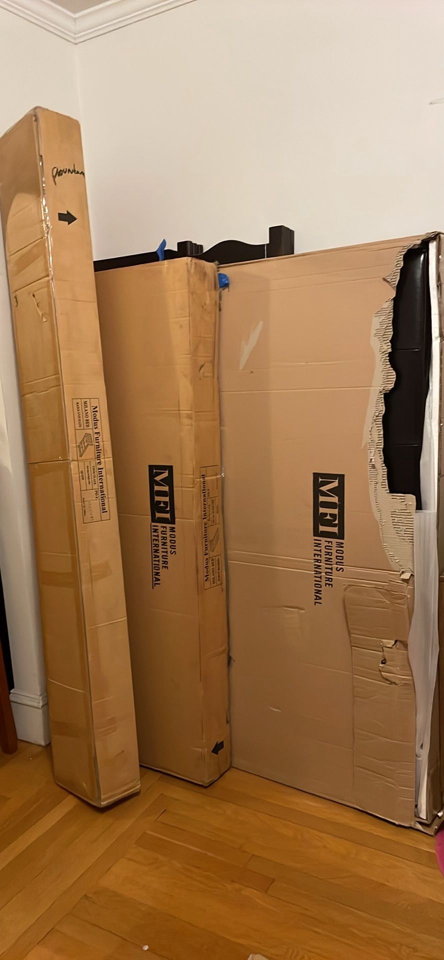 Chocolate brown leather queen size bed in a box ( headboard, footboard, and rails ). $600.00 or best offer Buy a moves/picks up Available until 1/20… moving sale