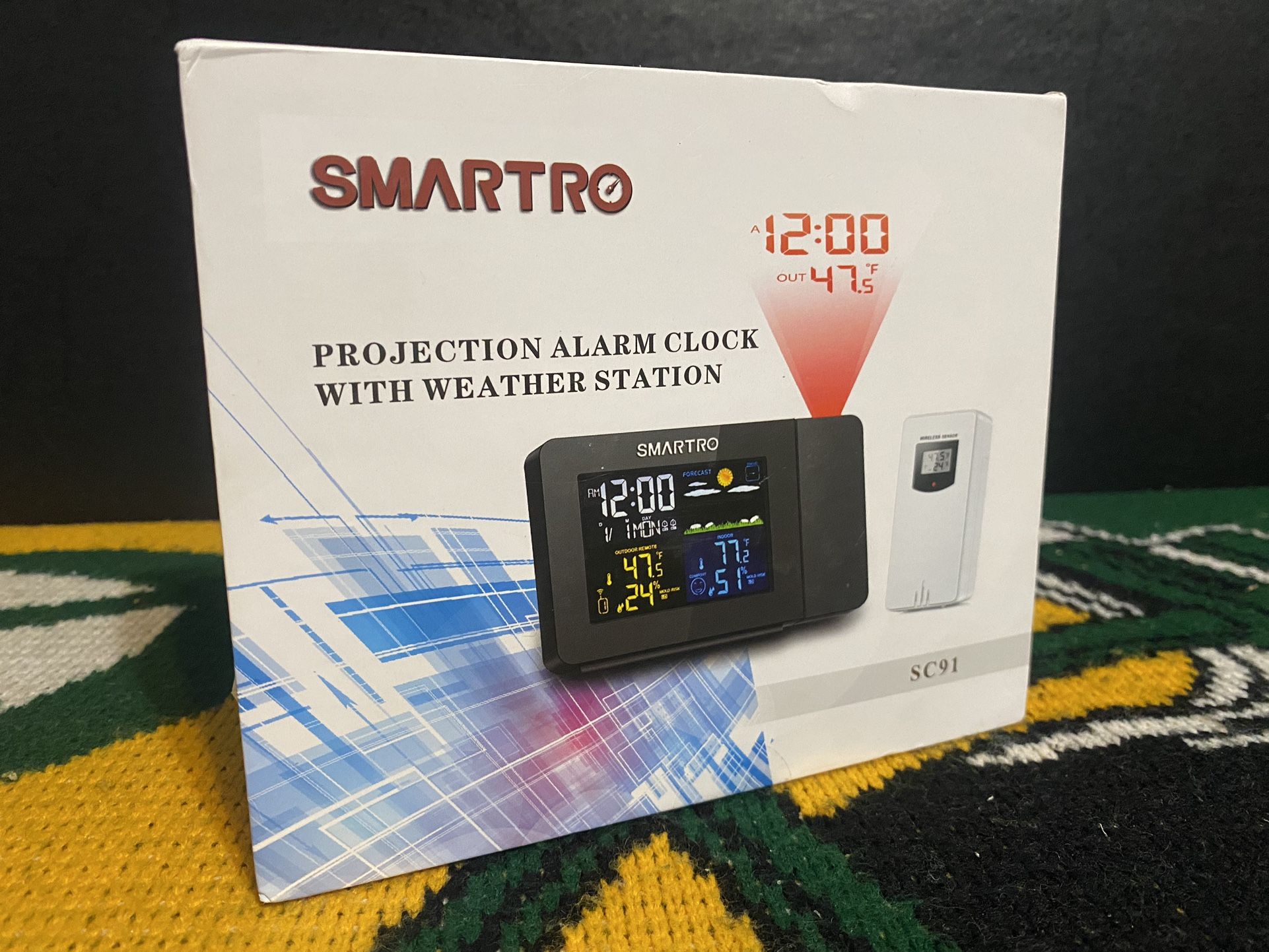 SMARTRO SC91 Digital LCD Projection Alarm Clock with Indoor Outdoor Thermometer. Dual alarm, time and temperature projection, adjustable backlight, snooze time of 5-60min, indoor and outdoor temperature and humidity. Condition is new. Asking $25. Serious inquires only. Thanks.
