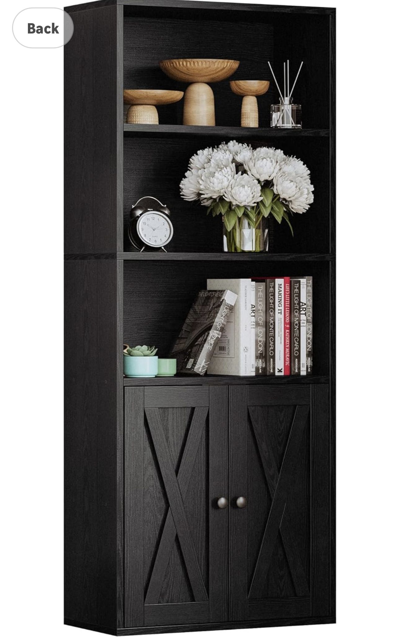Industrial Bookshelves and Bookcases with Doors 11.8 in Depth Floor Standing 5 Shelf Display Storage Shelves Bookcase Home Decor Furniture for Home, Office, Living Room, Bedroom new in box