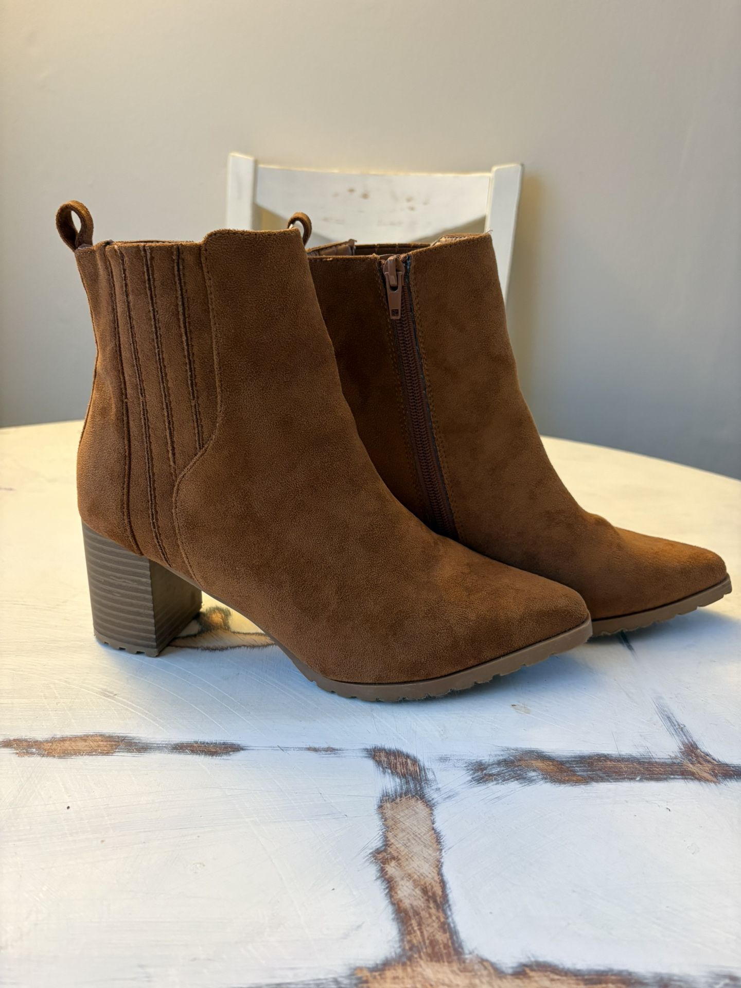 Size 7 Stylish chestnut ankle booties with a block heel. Perfect for versatile wear.