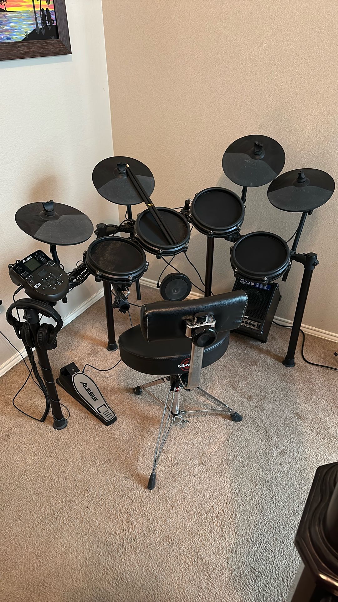 Alesis DM7X electric drum set. 9 pc kit and throne and Roland amp and head phones. The throne itself is over 250 Roland amp is over 360 Have sticks and books I can throw in as well. This is over 1200 dollars EASY and was hardly played on. Asking $700