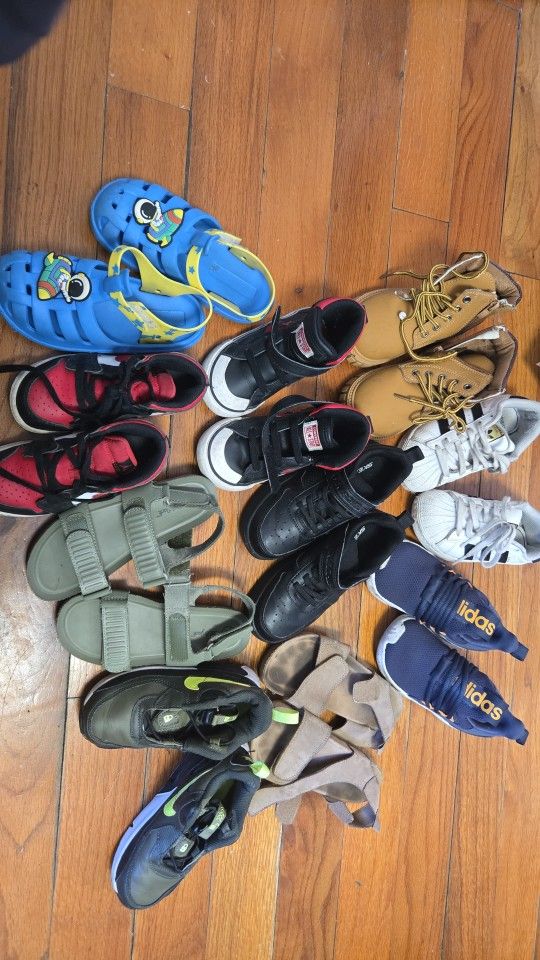 10 shoes/sandals boy sizes 8 to 11.5 US. Worn but most of them are in perfect condition.