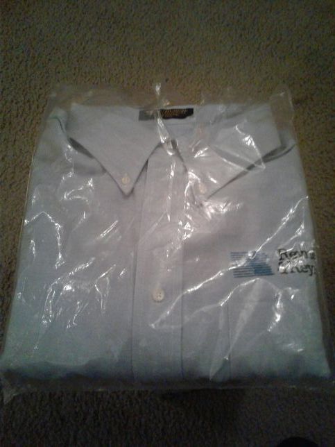 Arrow Hold Wrinkle Free blue work shirt, size XXL. It has a name of a company but can be removed.