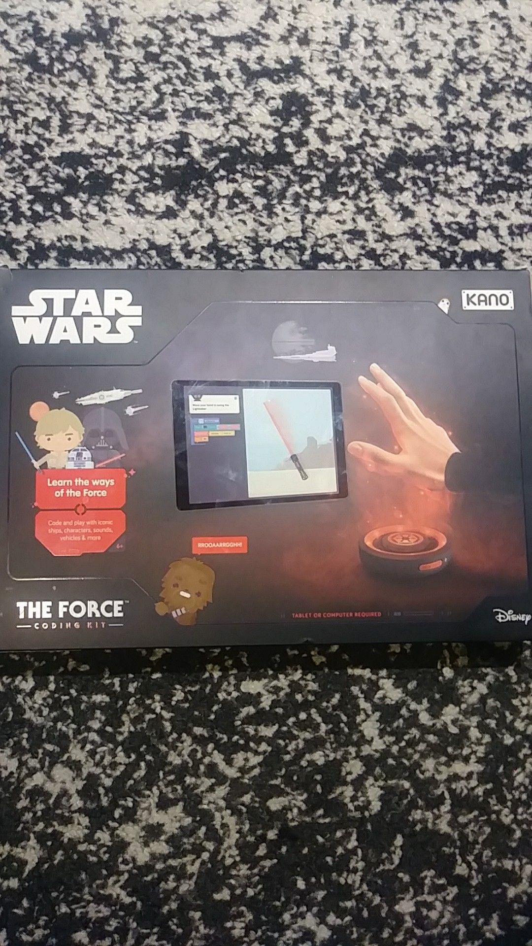 Open box never used. Star wars Kano The Force Coding kit. Explore the force. Creat your own Star Wars Adventure. Learn to code. Compatible with IPad, Mavs, Windows 10 & Fire 10.