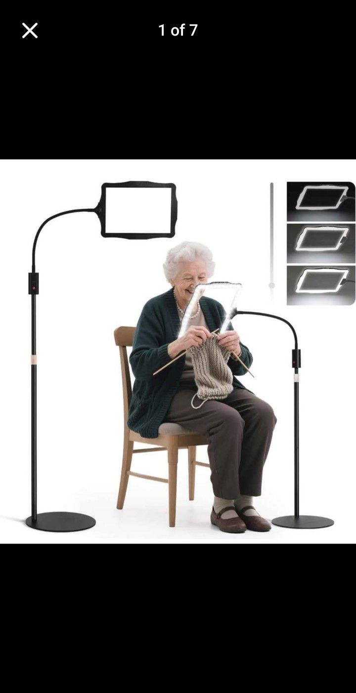 Large Floor Magnifying Glass with Light and Stand, 48-LED Lighted Adjustable Height Floor Magnifying Lamp with 360° Flexible Gooseneck, Hands Free Magnifier for Close Work Reading Cross-Stitching