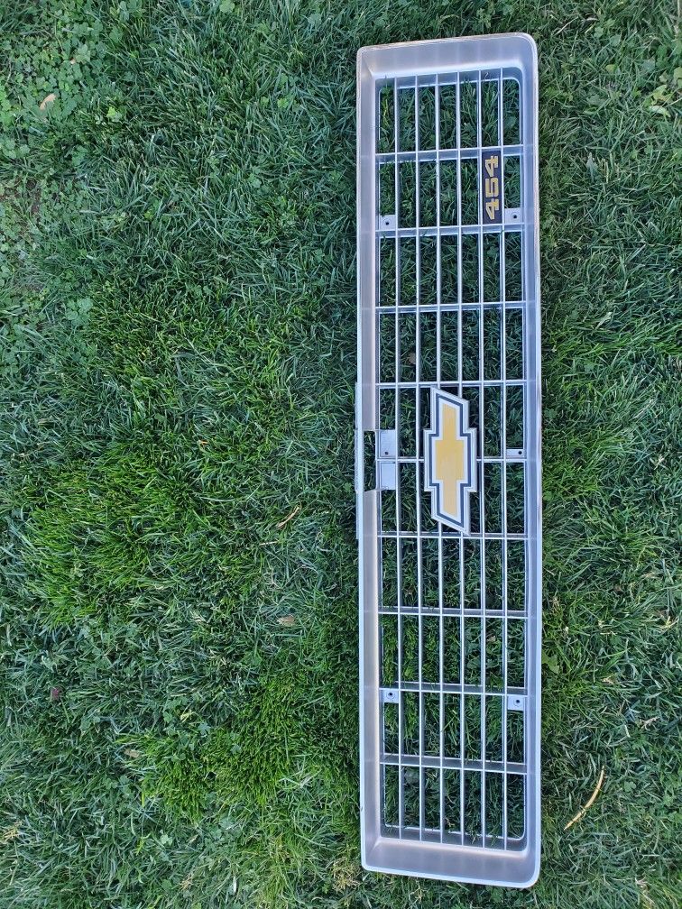 1973 / 1974 Chevy c20 grill in beautiful restored condition, deluxe grill with chrome trim 454 emblem ,fits c20 and c30 Chevy trucks New emblem and Bowtie, no cracks or missing tabs, Original parts
